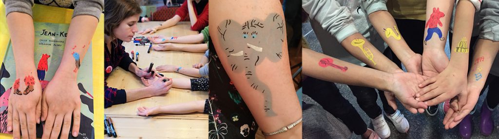 Le mercredi 8, nous mettrons à l’honneur un certain Jean-Kevin, « héros » de l’album écrit par Cécile Roumiguière, à travers deux lectures tatouées -sur vos bras.